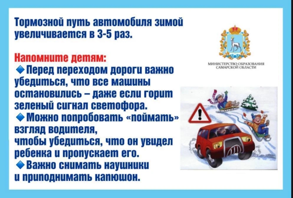 Уважаемые родители! В связи с погодными условиями напоминаем о правилах безопасности во время дорожного движения. Будьте внимательны и осторожны на дороге, берегите жизнь и здоровье ваших родных и близких, в том числе во время поездок. Напомните детям простые правила поведения на улице в зимний период |